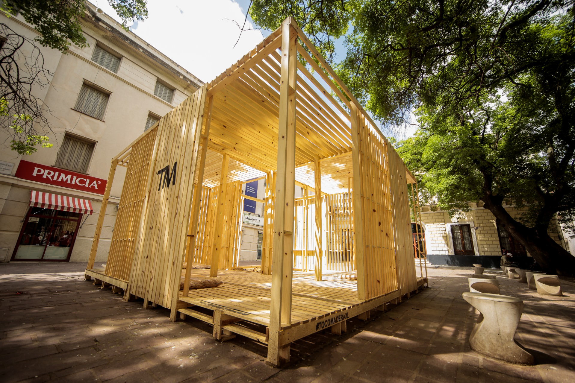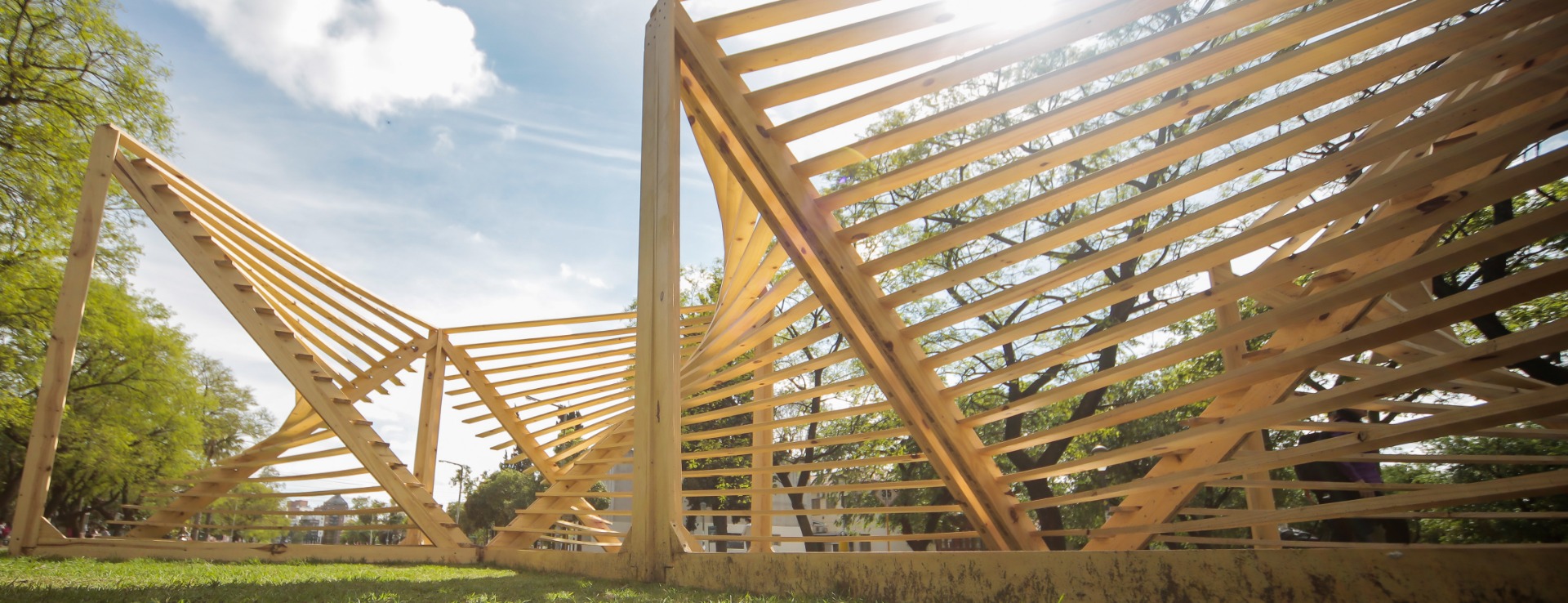330 tablas de 4 x 1 pulgada de 3.05 mts de longitud, más 70 varillas roscadas y clavos a discreción, ese es el material para generar un proyecto de impacto urbano para ser expuesto en la ciudad de Córdoba.